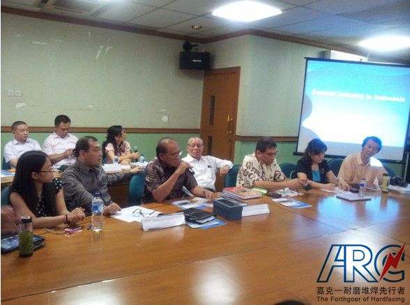 为促进中国-印度尼西亚水泥行业企业有效合作,进一步推动我国水泥设备制造企业国际化进程。 2013年7月22-26日,以中国建材机械工业协会秘书长王玉敏为团长,北京嘉克公司董事长刘振英博士等一行20人的中国代表团赴雅加达参加了“中国-印尼水泥技术装备国际合作洽谈会”,期间访问了印尼工商会馆中国委员会,双方就中印尼经济合作贸易往来进行交流。