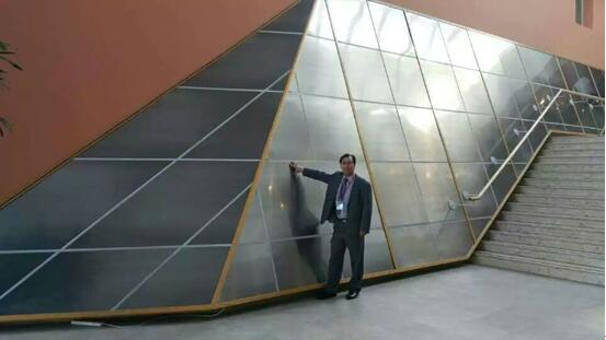 (刘振英博士在TWI铝合金搅拌摩擦焊作品前留影)