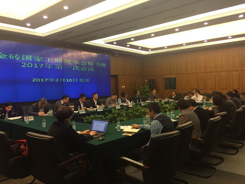 本次会议还探讨了2017年工作的具体部署和每一家单位的分工,各单位对任务分工提出了相关建议,介绍与本单位相关任务的办理的进展和下一步的计划。首先各理事单位汇报了筹备工作的相关情况。中石化张征局长代表能源与绿色经济工作组介绍了《标准协调统一共同宣言》和建立金砖国家电子商务平台工作的相关考虑和工作进展;中国联通集团国际业务部总经理、理事会副秘书长李翀介绍了放松管制组的筹备工作,提出签证便利化和数字经济论坛的相关意见;国机集团经营发展部部长、理事会副秘书长王玉琦介绍了制造业工作组的筹备工作的有关情况;中国银行金融部高级经理代表金融组对开展工作情况和工作计划作了简要汇报,探讨了与金砖国家新开发银行合作的重要议题。随后基础设施工作组组长单位中国中铁国际事业部副总经理杨新平、技能发展工作组组长单位北京嘉克新兴科技有限公司董事长刘振英、农业经济工作组组长单位中国造纸协会综合业务部副主任王华同也汇报了相关工作情况。