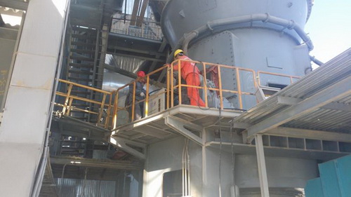 嘉克员工在塔吉克斯坦水泥厂进行耐磨堆焊施工