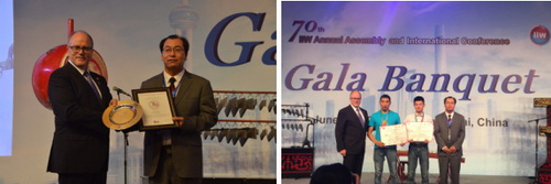 在国际焊接学会年会上,IIW主席Gary Marquis先生向IIWžCWSž Arc Cup 2017国际焊接大赛副主席兼秘书长刘振英博士颁发了IIWž CWSž Arc Cup 2017国际焊接大赛认可和荣誉证书,并授予特制的金属纪念牌。他赞赏国际焊接大赛和IIW第70届年会、国际会议一起,作为三大活动之一,为世界焊接技术的进步作出了贡献。