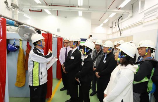 2017年第二届香港焊接职业技能大赛场地监督为一众主礼嘉宾介绍手工焊条电弧焊比赛场地